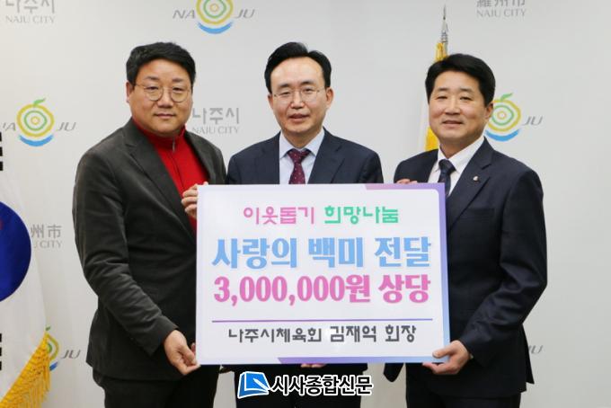 [½Ã»çÁ¾ÇսŹ® = À¯µ¿±¹ ±âÀÚ] ³ªÁÖ½Ã(½ÃÀå À±º´ÅÂ)´Â Á¦3´ë ³ªÁÖ½ÃüÀ°È¸ÀåÀ¸·Î ÃëÀÓÇÑ ±èÀç¾ï ȸÀåÀÌ ÃÖ±Ù ¡°Áö¿ª ¾Æµ¿µéÀÇ µçµçÇÑ ÇÑ ³¢ ½Ä»ç¿¡ º¸ÅÆÀÌ µÇ±æ ¹Ù¶õ´Ù¡±¸ç ¹é¹Ì 117Æ÷´ë(300¸¸¿ø »ó´ç)¸¦ ÈÄ¿øÇß´Ù°í 9ÀÏ ¹àÇû´Ù.