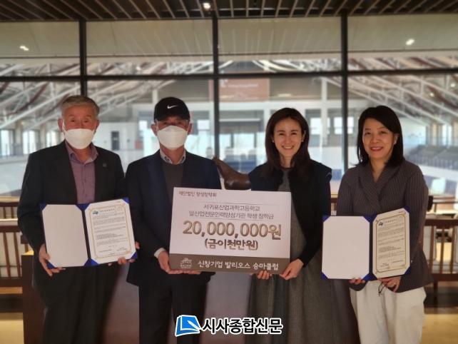 [½Ã»çÁ¾ÇսŹ® = °í¼º¹Î ±âÀÚ] ¼±ÍÆ÷»ê¾÷°úÇаíµîÇб³(±³Àå ±è¼öȯ)Àº 3¿ù 10ÀÏ ½Åâ±â¾÷ ¹ß¸®¿À½º½Â¸¶Å¬·´°ú »êÇÐÇù¾à ü°á ¹× Àç´Ü¹ýÀΠ⼺ÀåÇÐȸ·ÎºÎÅÍ ÀåÇÐ±Ý 2õ¸¸¿øÀ» ±âŹ¹Þ¾Ò´Ù.