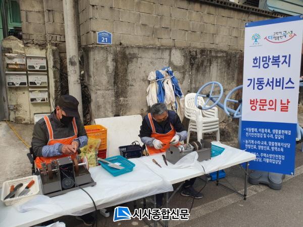 À̹ø Èñ¸Áº¹Áö ±âµ¿¼ºñ½º¿¡¼´Â ´Ù¸²µ¹ ºÀ»ç´ÜÀÇ Ä®°¥ÀÌ ¼ºñ½º°¡ ´Ü¿¬ ÃÖ°íÀÇ Àα⸦ ¾ò¾ú´Ù. ¸¶À» ¾î¸£½ÅµéÀº º¹Áö¼ºñ½º¸¦ ¹Þ±â À§ÇØ ¸¶À»È¸°ü ¾ÕÀ¸·Î Ä®, ³´, °¡À§ µîÀÌ ´ã±ä ²Ù·¯¹Ì¸¦ °¡Áö°í ³ª¿Ô´Ù.