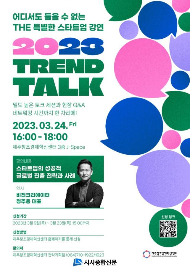 Á¦ÁÖâÁ¶°æÁ¦Çõ½Å¼¾ÅÍ(¼¾ÅÍÀå À̺´¼±, ÀÌÇÏ Á¦ÁÖ¼¾ÅÍ)´Â ¿À´Â 23ÀϱîÁö ¡®½ºÅ¸Æ®¾÷ÀÇ ¼º°øÀûÀÎ ÇØ¿Ü ÁøÃâ Àü·«°ú »ç·Ê¡¯¸¦ ÁÖÁ¦·Î °³ÃֵǴ ¡®TREND TALK(ÀÌÇÏ Æ®·»µå ÅäÅ©)¡¯ Âü°¡ÀÚ¸¦ ¸ðÁýÇÑ´Ù.