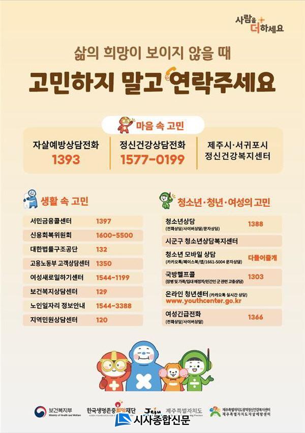 ±¤¿ªÁ¤½Å°Ç°º¹Áö¼¾ÅÍ ¼¾ÅÍÀåÀº ¡°ÀÚ»ì °íÀ§Çè½Ã±â ÁýÁßÈ«º¸¸¦ ÅëÇØ »ý¸í»ç¶û¹®È¸¦ È®»ê½Ã۰í, Àڻ쿹¹æÈ¯°æÀ» Á¶¼ºÇÏ¿© Á¦ÁÖµµ¹ÎÀÇ ¾ÈÀüÇÏ°í °Ç°ÇÑ »î¿¡ ±â¿©ÇÒ ¼ö ÀÖµµ·Ï ³ë·ÂÇÒ °Í¡±À̶ó°í ¸»Çß´Ù.