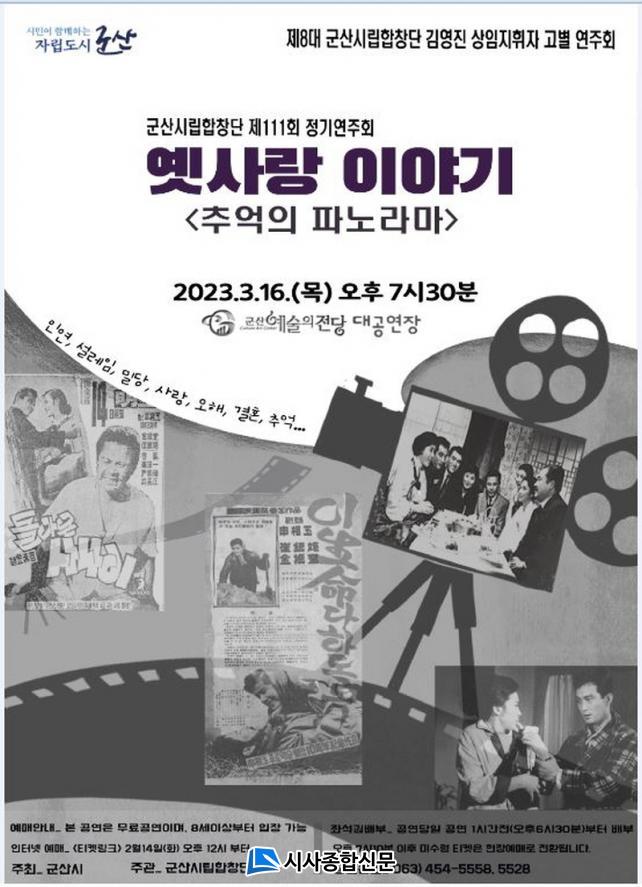 [½Ã»çÁ¾ÇսŹ® = ¿À½ÂÅà ±âÀÚ] Á¦8´ë ±è¿µÁø »óÀÓÁöÈÖÀÚÀÇ °íº°¿¬ÁÖȸ°¡ ¿¸°´Ù. ±º»ê½Ã¸³ÇÕâ´Ü Á¦111ȸ Á¤±â¿¬ÁÖȸ ¡®Ãß¾ïÀÇ ÆÄ³ë¶ó¸¶, ¿¾»ç¶ûÀ̾߱⡯°¡ ¿À´Â 16ÀÏ ¿ÀÈÄ 7½Ã 30ºÐ ±º»ê¿¹¼úÀÇÀü´ç ´ë°ø¿¬Àå¿¡¼ ¿¸°´Ù.À̹ø Á¤±â¿¬ÁÖȸ´Â ¿¬Àΰ£ÀÇ »ç¶ûÀ» ÁÖÁ¦·Î ù ¸¸³²ºÎÅÍ »ç¶ûÀÇ °á½ÇÀ» ÀÌ·ç±â±îÁö »ç¶ûÀÇ °úÁ¤À» 6´Ü°è·Î ³ª´©¾î ±×¿¡ µû¶ó º¯Çذ¡´Â °¨Á¤À» 1950³â~60³â´ë Çѱ¹°íÀü¿µÈ¿Í ¿ì¸® °¡°îµé·Î ¼±º¸ÀÏ ¿¹Á¤ÀÌ´Ù.