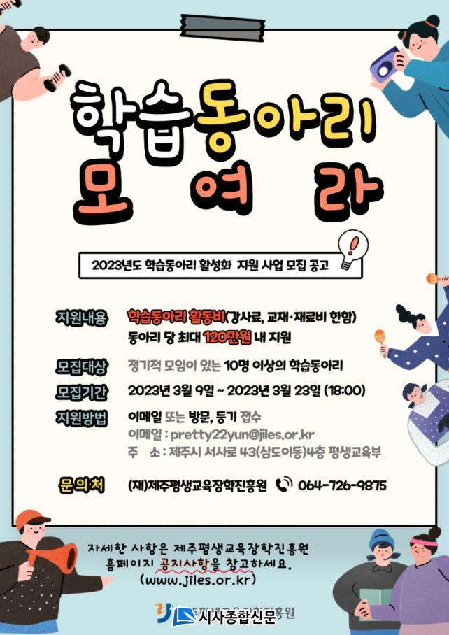 ¸ðÁý ´ë»óÀº Á¤±âÀû ¸ðÀÓÀ» ÇÏ´Â ±¸¼º¿ø 10¸í ÀÌ»óÀÇ µµ³» ÇнÀµ¿¾Æ¸®·Î Á÷¾÷ ´É·Â, ¹®È ¿¹¼ú, Àι® ±³¾ç, ½Ã¹Î Âü¿©ÀÇ 4°³ ºÐ¾ß¿¡ Áö¿øÇÒ ¼ö ÀÖ´Ù. ÀÚ¼¼ÇÑ »çÇ×Àº Á¦ÁÖÆò»ý±³À°ÀåÇÐÁøÈï¿ø ȨÆäÀÌÁö (https://jiles.or.kr)¿¡¼ È®ÀÎÇÒ ¼ö ÀÖÀ¸¸ç, °øÁö »çÇ׿¡ µî·Ï µÇ¾î ÀÖ´Â ½Åû¼¸¦ ÀÛ¼ºÇÏ¿© À̸ÞÀÏ ¶Ç´Â ¹æ¹®‧¿ìÆíÀ¸·Î ½ÅûÇÒ ¼ö ÀÖ´Ù.