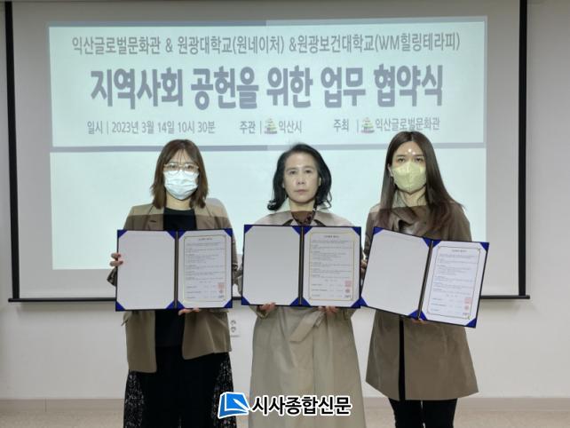 ÀÍ»ê±Û·Î¹ú¹®È°üÀº Áö³ 14ÀÏ ¿ø±¤´ëÇб³ Çб³±â¾÷ ¡®¿ø³×ÀÌó¡¯¿Í ¿ø±¤º¸°Ç´ëÇб³ Çб³±â¾÷ ¡®WMÈúºùÅ×¶óÇÇ¡¯¿Í ÇÔ²² Áö¿ª»çȸ °øÇåÀ» À§ÇÑ ¾÷¹«Çù¾àÀ» ü°áÇß´Ù.