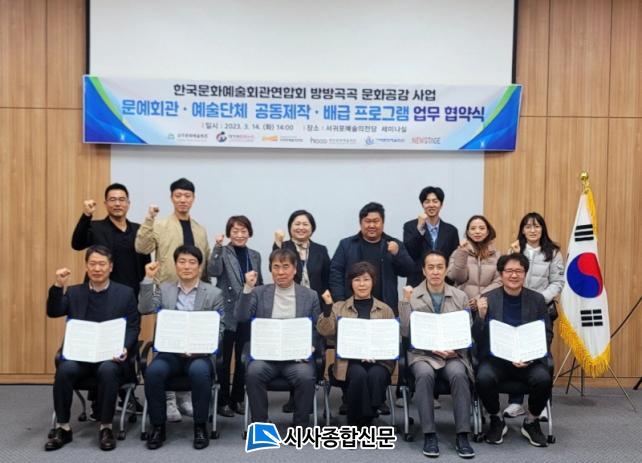 ¼¼¹Ì³ª½Ç¿¡¼ °³ÃÖµÈ Çù¾à½Ä¿¡´Â ¼±ÍÆ÷¿¹¼úÀÇÀü´ç À̰æ¹Î °üÀå, ÇԾȹ®È¿¹¼úȸ°ü Á¤¼®°æ ¼ÒÀå, ¼ºÁÖ±º ¹®È¿¹¼ú°ú ÀåÁø¼º ÆÀÀå, °í·É´ë°¡¾ß¹®È´©¸® ¹è»ó¿ì ÆÀÀå, °ÅÁ¦½Ã¹®È¿¹¼úÀç´Ü Á¤ºÀö ºÎÀå, ´º½ºÅ×ÀÌÁö À̼ö±Ù ´ëÇ¥¿Í °ø¿¬Á¦ÀÛ °ü°èÀÚµéÀÌ Âü¼®Çß´Ù.
