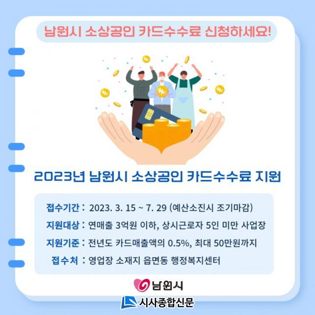 ÀÌ¿¡ ½Ã¿¡¼´Â ¼Ò»ó°øÀεéÀÇ Ä«µå¼ö¼ö·á ºÎ´ãÀ» ´ú¾î °æ¿µ¾ÈÁ¤À» Áö¿øÇϰí,Áö¿ª°æ±â¿¡ Ȱ·ÂÀ» ºÒ¾î³Ö±â À§ÇØ Ä«µå¼ö¼ö·á Áö¿ø»ç¾÷À» ½ÃÇàÇϰí ÀÖ´Ù. Áö³ÇØÀÇ °æ¿ì 1,700°³¼ÒÀÇ »ó°¡µéÀÌ Ä«µå¼ö¼ö·á Áö¿ø ÇýÅÃÀ¸·Î °æ¿µ¾ÈÁ¤¿¡µµ¿òÀ» ¹ÞÀ¸¸é¼ ¼Ò»ó°øÀεéÀÇ È£ÀÀÀ» ¾òÀº ¹Ù ÀÖ´Ù. Áö¿ø´ë»óÀº Àü³âµµ ¿¬¸ÅÃâ 3¾ï¿øÀÌÇÏ ¼Ò»ó°øÀÎÀ̸ç, Áö¿ø±âÁØÀº Àü³âµµ Ä«µå ¸ÅÃâ¾×ÀÇ 0.5%, ÃÖ´ë 50¸¸¿ø±îÁö Áö¿øµÈ´Ù.
