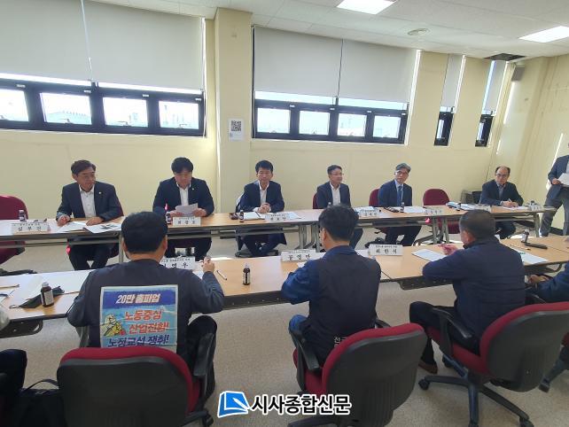 À̳¯ °£´ãȸ¿¡´Â ±Ç¿ä¾È µµÀÇ¿ø, ½ÉºÎ°Ç ±ºÀÇ¿ø, ±èÀçõ ±ºÀÇ¿ø, ÃÖ±¤È£ ±ºÀÇ¿ø°ú ÀüºÏµµÃ» ±è¿µ½Ä ÀÏÀÚ¸®¹Î»ý°æÁ¦°úÀåÀ» ºñ·ÔÇÑ ¿ÏÁÖ±º, ³ëµ¿´Üü °ü°èÀÚ°¡ Âü¿©ÇÏ¿© ³ëµ¿ÀÚ ÀÛ¾÷º¹ ¼¼Å¹¼Ò ¼³Ä¡ Çʿ伺°ú ¿î¿µ°èȹ¿¡ ´ëÇØ¼ ³íÀÇÇß´Ù.