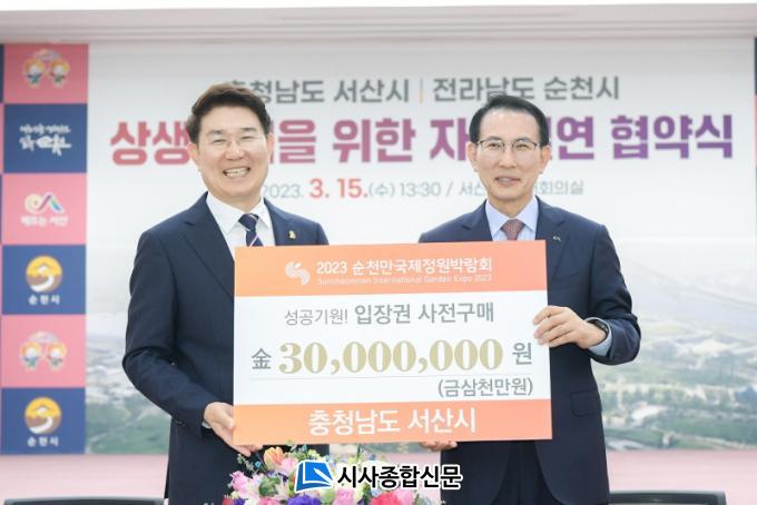 | ¼øÃµ½Ã¿Í Ãæ³² ¼»ê½ÃÀÇ »ó»ý¹ßÀü ÀڸŰῬ Çù¾à½Ä¿¡¼ ¼»ê½Ã°¡ 2023Á¤¿ø¹Ú¶÷ȸ ÀÔÀå±ÇÀ» »çÀü±¸¸ÅÇß´Ù |
