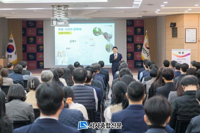 ³ë°ü±Ô ½ÃÀåÀº ¡¸¼øÃµ¸¸ Àüº¿´ë¸¦ »ÌÀº ±× ³²ÀÚ! ´ëÇѹα¹ »õ·Î¿î ÀÌÁ¤Ç¥¸¦ ¸¸µé´Ù¡¹¶ó´Â ÁÖÁ¦·Î °¿¬À» ÁøÇà, ¼øÃµ½ÃÀÇ ³ëÇϿ츦 °øÀ¯Çß´Ù. À̾î, ÀڸŰῬ Çù¾à¼ ¼¸í°ú ±â³äÆÐ¸¦ ±³È¯Çϰí, 3õ¸¸ ¿øÀÇ 2023Á¤¿ø¹Ú¶÷ȸ ÀÔÀå±Ç ±¸¸Å¾àÁ¤À» ÇÏ´Â µî Áö¼ÓÀûÀÎ »óÈ£Çù·Â ÀÇÁö¸¦ ´ÙÁ³´Ù.