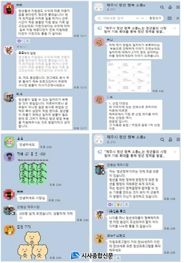 ¡®Á¦Áֽà û³â Çູ ¼ÒÅëe¡¯´Â ½Ã°£°ú Àå¼Ò¿¡ ±¸¾ÖµÊ ¾øÀÌ ¼ö½Ã·Î û³âµéÀÇ ÀǰßÀ» µè°í ´äÇϴ īī¿ÀÅå ¿ÀÇ äÆÃ¹æÀÌ´Ù.Áö³ 3¿ù 6ÀϺÎÅÍ 13ÀϱîÁö 8Àϰ£ ¿ÀÇ äÆÃ¹æÀ» ÁýÁß ¿î¿µ ÇÑ °á°ú, ¿äÁò û³âµéÀÇ Çö½ÇÀÌ ¹Ý¿µµÈ ÀÏÀÚ¸®¡¤Ã¢¾÷, °áÈ¥¡¤Ãâ»ê¡¤À°¾Æ, ÁÖ°Å µî¿¡ ´ëÇÑ 95°ÇÀÇ ´Ù¾çÇÑ ÀǰßÀ» Á¦¾È ¹Þ¾Ò°í, ÀÌ´Â °ð Á¦ÁÖ½ÃÀå°ú û³â µî ¿ÀÇ äÆÃ¹æ¿¡ Âü¿©ÇÑ ¸ðµÎ¿¡°Ô ½Ç½Ã°£À¸·Î °øÀ¯µÆ´Ù.