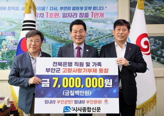 [½Ã»çÁ¾ÇսŹ® = ¿À½ÂÅà ±âÀÚ] JB ÀüºÏÀºÇà Á÷¿ø°ú °¡Á·µéÀÌ ºÎ¾È±º °íÇâ»ç¶û±âºÎÁ¦¿¡ ÀÚ¹ßÀûÀ¸·Î µ¿ÂüÇØ ºÎ¾ÈÁö¿ª Ȱ¼ºÈ¿¡ ±â¿©Çß´Ù.