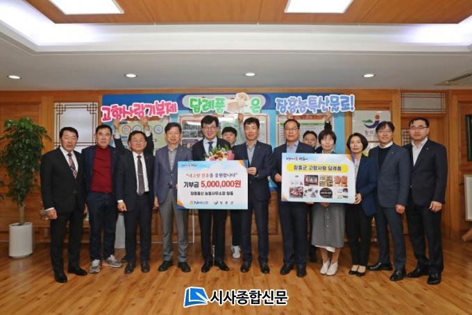 ±è¼®Âù NH³óÇù»ý¸í ºÎ»çÀå, Á¤¾ÈÁØ NH³²ÇØÈÇÐ ºÎ»çÀåÀ» ºñ·ÔÇÑ ÀÓ¿ø 8¸íÀÌ °íÇâ»ç¶û±âºÎ±Ý 500¸¸¿øÀ» ±âºÎÇÏ¸ç °íÇâ»ç¶û±âºÎÁ¦ È«º¸¿Í Ȱ¼ºÈ ÀÇÁö¸¦ ´ÙÁ³´Ù.