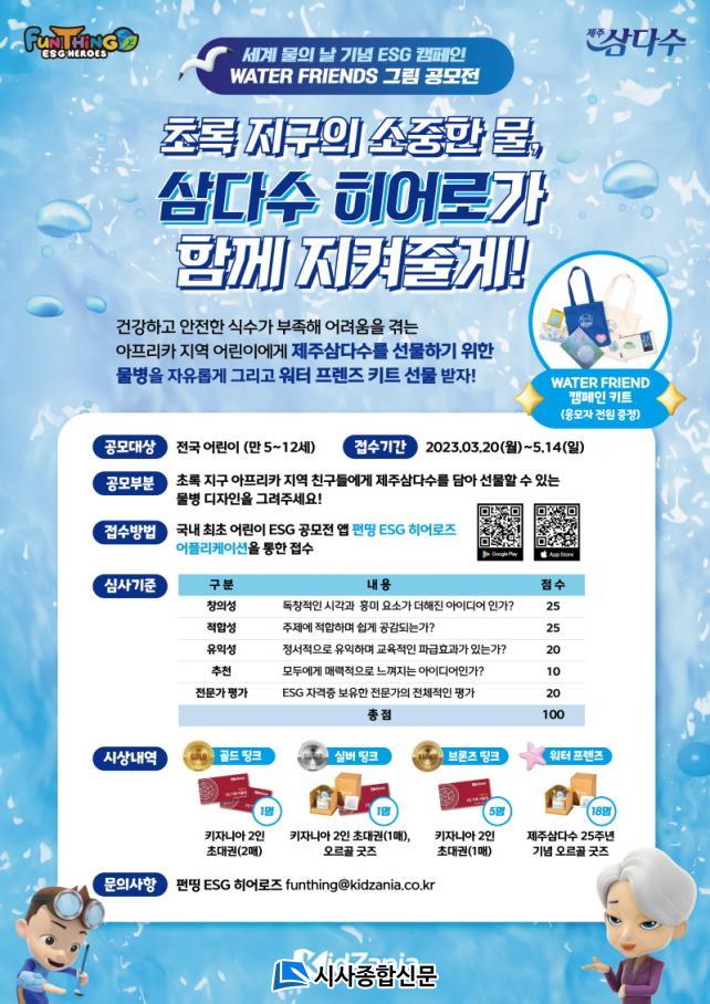 Á¦ÁÖ»ï´Ù¼ö´Â ¾î¸°À̵鿡°Ô ±ú²ýÇÑ ¹°ÀÇ ¼ÒÁßÇÔÀ» ¾Ë¸®°í, ´©±¸³ª ¾ÈÀüÇÑ ¹°À» ¸¶½Ç ¼ö ÀÖ¾î¾ß ÇÑ´Ù´Â ¸Þ½ÃÁö¸¦ Àü´ÞÇϰíÀÚ ESG Ä·ÆäÀÎÀÇ ÀÏȯÀ¸·Î À̹ø °ø¸ðÀüÀ» ¸¶·ÃÇß´Ù. °ø¸ðÀüÀ» ÅëÇØ ¹° ºÎÁ·À¸·Î ¾î·Á¿òÀ» °Þ´Â ¾ÆÇÁ¸®Ä« Ä£±¸µéÀ» µ¹¾Æº¸°í, Áö¼Ó°¡´ÉÇÑ »îÀ» À§ÇÑ ¡®¹°¡¯ÀÇ Àǹ̸¦ µÇ»õ°Üº¼ ¼ö ÀÖ´Â ±âȸ¸¦ Á¦°øÇÑ´Ù´Â ÃëÁö´Ù.