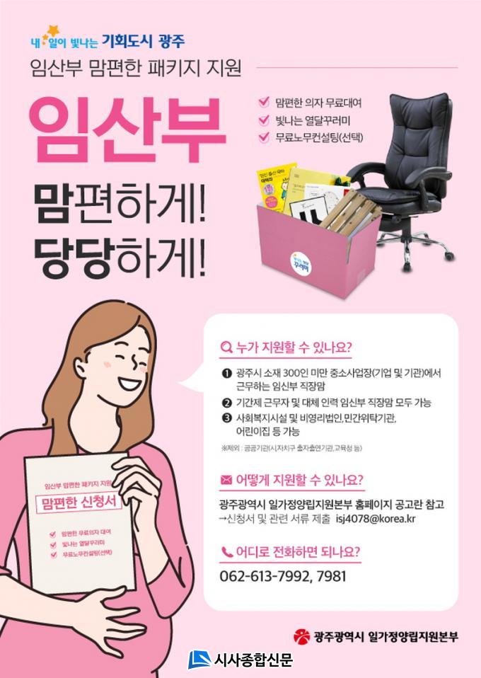 ¡®ºû³ª´Â ÀÓ»êºÎ ¸¾ÆíÇÑ ÆÐŰÁö¡¯´Â Áö¿ª »çȸÀû ±â¾÷ÀÌ Á¦ÀÛÇÑ ÀӽźΠüÇü¿¡ ¸ÂÃç Á¢ÀÌÁ¶ÀýÀÌ °¡´ÉÇÑ ÀÓ»êºÎ Àü¿ëÀÇÀÚ ¹«·á ´ë¿©, ÀÓ»êºÎÀÇ Á÷Àå»ýȰ¿¡ ÇÊ¿äÇÑ ºû³ª´Â ¿´Þ²Ù·¯¹Ì Á¦°ø, ±Ù¹«È¯°æ °³¼±À» À§ÇÑ ¸ð¡¤ºÎ¼º ³ë¹« »ó´ã µî 3°³ ºÐ¾ß¸¦ Á¾ÇÕ Áö¿øÇÑ´Ù.