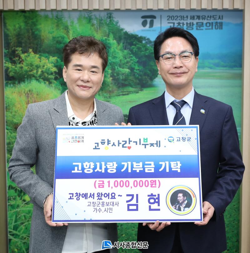 [½Ã»çÁ¾ÇսŹ® = ¿À½ÂÅà ±âÀÚ] °íâ Ãâ½Å °¡¼öÀÌÀÚ 2023 ¼¼°èÀ¯»êµµ½Ã °íâ¹æ¹®ÀÇ ÇØ È«º¸´ë»ç·Î Ȱµ¿ÇÏ´Â °¡¼ö ±èÇöÀÌ 23ÀÏ °íÇâ»ç¶û±âºÎÁ¦ ±âºÎ±Ý 100¸¸¿øÀ» ±âŹÇß´Ù.