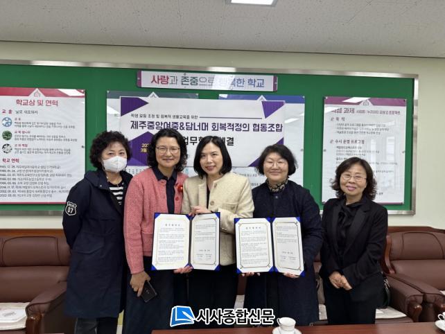 [½Ã»çÁ¾ÇսŹ® = °í¼º¹Î ±âÀÚ] Á¦ÁÖÁß¾Ó¿©ÀÚÁßÇб³(±³Àå ±èâ·Ã)´Â 2023³â 3¿ù 23ÀÏ ´ã³Ê¸Óȸº¹ÀûÁ¤ÀÇÇùµ¿Á¶ÇÕ(ÀÌ»çÀå ÀåÀÎÈñ)°ú Çлý °¥µî Á¶Á¤ ¹× ȸº¹Àû »ýȰ±³À°À» À§ÇÑ Çù¾à(MOU)À» ü°áÇß´Ù.