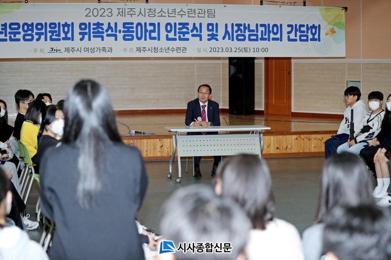 [½Ã»çÁ¾ÇսŹ® = °í¼º¹Î ±âÀÚ] °º´»ï Á¦ÁÖ½ÃÀåÀº 3¿ù 25ÀÏ(Åä) û¼Ò³â¼ö·Ã½Ã¼³ ¿î¿µÀ§¿ø À§ÃËÀå°ú û¼Ò³â µ¿¾Æ¸® ÀÎÁØÀåÀ» ¼ö¿©Çϰí û¼Ò³âµéÀÇ ÀǰßÀ» ûÃëÇÏ´Â ¿ÀÂù µµ½Ã¶ô °£´ãȸ ÀÚ¸®¸¦ ¸¶·ÃÇß´Ù.