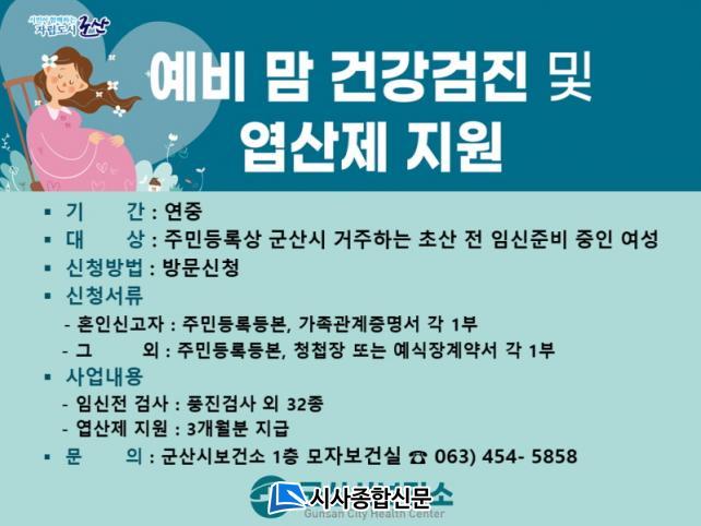 [½Ã»çÁ¾ÇսŹ® = ¿À½ÂÅà ±âÀÚ] ±º»ê½Ãº¸°Ç¼Ò´Â ÀӽŠÁغñ ÁßÀÎ ¿¹ºñ¡¤½ÅÈ¥ºÎºÎ ÃÊ»ê Àü °¡Àӱ⠿©¼ºÀ» À§ÇØ »çÀü °Ç°°ü¸®¸¦ Á¦°øÇÑ´Ù°í ¹àÇû´Ù.