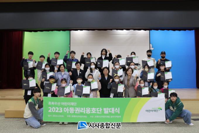 ¡®2023 ÃÊ·Ï¿ì»ê ¾î¸°ÀÌÀç´Ü ¾Æµ¿±Ç¸®¿ËÈ£´Ü¡¯Àº ÃÑ 140¸íÀ¸·Î °æ±â, ºÎ»ê, ´ë±¸, ´ëÀü, ±¤ÁÖ, ½ÃÈï, Á¦ÁÖ Áö¿ª¿¡¼ °ø°³¸ðÁýÀ» ÅëÇØ ±¸¼ºµÇ¾úÀ¸¸ç, ±¤ÁÖ¿¡¼´Â 10¼¼ºÎÅÍ ¸¸ 18¼¼·Î ±¸¼ºµÈ ÃÑ 31¸íÀÇ ¾Æµ¿µéÀÌ ÇÔ²²ÇÑ´Ù. ¹ß´ë½ÄÀ» ¸¶Ä£ ¾Æµ¿±Ç¸®¿ËÈ£´ÜÀº ¿ÃÇØ ¹ßÀǵǴ ¡®¾Æµ¿±âº»¹ý¡¯ Á¦Á¤ Ã˱¸ Ȱµ¿À» ½ÃÀÛÀ¸·Î Áö¿ªº° ¾Æµ¿ ÀǰßÀ» ¼ö·ÅÇØ ¾Æµ¿ÀÌ ÇູÇÏ°Ô »ì ¼ö Àִ ȯ°æÀ» ¸¸µé±â À§ÇÑ ¼º¸í¼ ÀÛ¼º ¹× Á¤Ã¥Á¦¾È, ÀÎÅÍºä µî ´Ù¾çÇÑ ¿ËȣȰµ¿À» ÆîÃijª°¥ ¿¹Á¤ÀÌ´Ù.