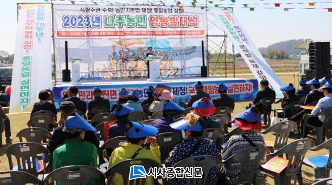 ³ªÁÖ½Ã(½ÃÀå À±º´ÅÂ)´Â 31ÀÏ ¿µ»ê° µÐÄ¡ üÀ°°ø¿ø¿¡¼ ³ªÁÖ³ó¹Îȸ(ȸÀå ±è¸í¼ö), ¿©¼º³ó¹Îȸ(ȸÀå ¼Û¼÷Èñ) ÁÖ°üÀ¸·Î ¡®2023³â ³ªÁÖ ³ó¹Î ¿µ³ó¹ß´ë½Ä¡¯ Çà»ç°¡ ¿·È´Ù°í ¹àÇû´Ù.