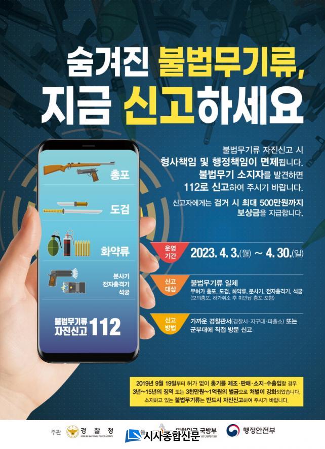 ½Å°í¹æ¹ýÀº º»ÀÎ ¶Ç´Â ´ë¸®ÀÎÀÌ °¡±î¿î °æÂû°ü¼(°æÂû¼‧Áö±¸´ë‧ÆÄÃâ¼Ò)³ª ½Å°í¼Ò°¡ ¼³Ä¡µÈ ±ººÎ´ë¿¡ ºÒ¹ý¹«±â·ù¸¦ Á¦ÃâÇÏ¸é µÇ°í, ºÎµæÀÌÇÑ »çÁ¤À¸·Î ½Å°í ±â°£ ³»¿¡ ºÒ¹ý¹«±â·ù¸¦ Á¦ÃâÇϱ⠾î·Á¿ï ¶§´Â ÀüÈ ¶Ç´Â ¿ìÆíÀ¸·Î »çÀü ½Å°í ÈÄ ½Ç¹°À» Á¦ÃâÇÒ ¼öµµ ÀÖ´Ù.