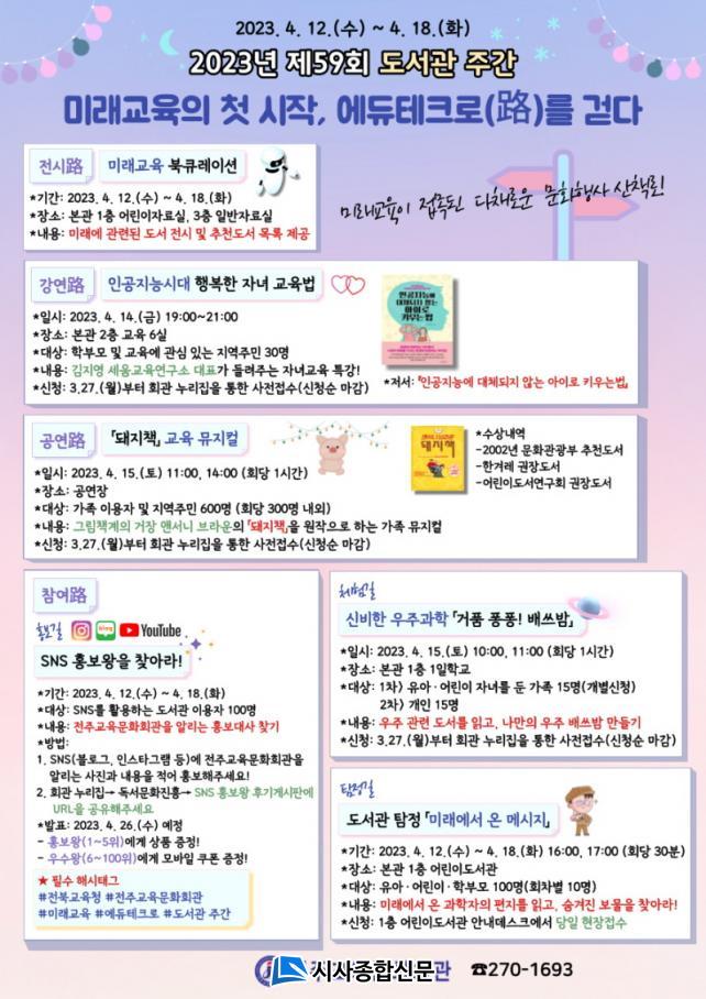 ¡ãÂü¿©ÖØ ¢¹Ã¼Çè±æ¿¡¼´Â ½ÅºñÇÑ ¿ìÁÖ°úÇÐÀ» ¿À°¨À¸·Î ´À²¸º¼ ¼ö ÀÖ´Â ¿ìÁÖ °ü·Ã µµ¼¸¦ ÀÐ°í ¿ìÁÖ ¹è¾²¹ã(¿ìÁÖ¸ð¾çÀÇ ÀÔ¿åÁ¦ 4. 15.(Åä) 10½Ã, 11½Ã) ¸¸µé±â üÇè, ¢¹Å½Á¤±æ¿¡¼´Â µµ¼°ü ŽÁ¤:¹Ì·¡¿¡¼ ¿Â ¸Þ½ÃÁö¸¦ ÁÖÁ¦·Î ¹æÅ»Ãâ Ä«Æä¸¦ ¸ðƼºê·Î ÇÑ ¹Ì·¡¿¡¼ ¿Â ¾î¸°ÀÌ Å½Á¤ ã±â °ÔÀÓÀ» ÁøÇàÇÑ´Ù. ¢¹È«º¸±æ¿¡¼´Â SNS È«º¸¿ÕÀ» ã¾Æ¶ó! ¶ó´Â ³»¿ëÀ¸·Î ÀüÁÖ±³À°¹®Èȸ°üÀ» ¾Ë¸®´Â È«º¸ ¼Æ÷ÅÍÁ ã¾Æ¼ ¼øÀ§ Â÷µîº° »óǰÀ» Áö±ÞÇÒ ¿¹Á¤ÀÌ´Ù.