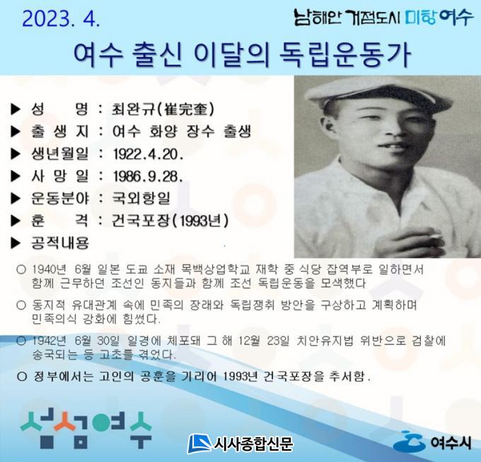 ¡®ÃÖ¿Ï±Ô ¼±»ý¡¯Àº 1940³â 6¿ù ÀϺ» µµÄì ¼ÒÀç ¸ñ¹é»ó¾÷Çб³ ÀçÇÐ Áß ½Ä´ç À⿪ºÎ·Î ÀÏÇÏ¸é¼ ÇÔ²² ±Ù¹«ÇÏ´ø Á¶¼±ÀÎ µ¿Áöµé°ú ÇÔ²² Á¶¼± µ¶¸³¿îµ¿À» ¸ð»öÇß´Ù.