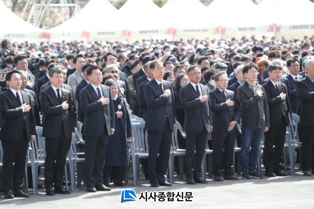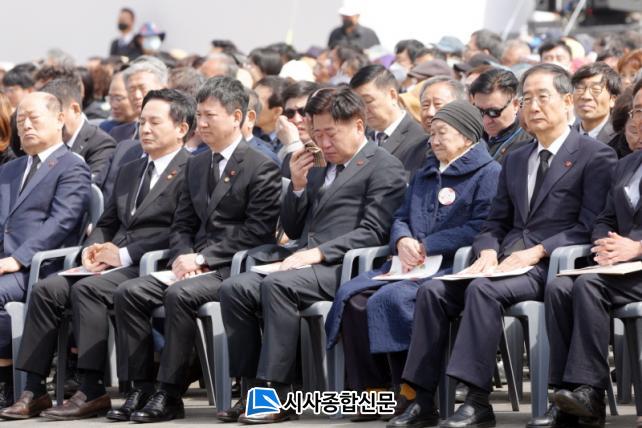Ãß³ä½Ä¿¡¼´Â 4¡¤3ÀÇ ¸í¿¹È¸º¹°ú ½ÇÁúÀû ÇÇÇØÈ¸º¹, °¡Á·°ü°è ȸº¹, ¼¼°è±â·ÏÀ¯»ê µîÀç ±â¿ø µîÀÇ Àǹ̸¦ ´ãÀº 4¡¤3 °æ°úº¸°í, ¾Ö±¹°¡ ¿µ»ó, À¯Á·»ç¿¬ µîÀ¸·Î 4¡¤3ÀÇ ÇØ°áÀ» À§ÇÑ ³ë·Â°ú ¼º°ú¸¦ °øÀ¯Çß´Ù.Ãß³ä½ÄÀº ½ÄÀüÇà»ç¿Í º» Çà»ç, ½ÄÈÄÇà»ç·Î ±¸¼ºµÆÀ¸¸ç, ¿ÀÀü 9½ÃºÎÅÍ ½ÄÀüÇà»ç·Î Á¾±³ÀÇ·Ê ¹× ¡®Å¬·´ ³ë·¡ÇÏÀÚ ÃãÃßÀÚ¡¯¿Í ÀåÇʼø(Á¦ÁÖ °ÅÁÖ ¹ÂÁö¼Ç) ¾¾ÀÇ °ø¿¬ÀÌ ÁøÇàµÆ´Ù.