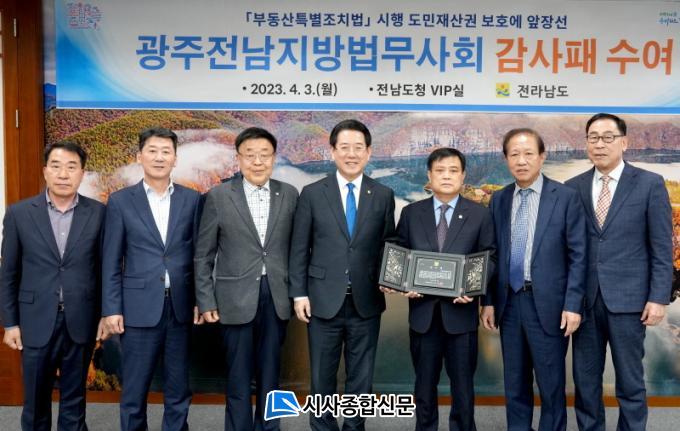 °¨»çÆÐ Àü´Þ½Ä¿¡´Â ±è¿µ·Ï Àü³²µµÁö»ç¿Í Á¤´ö¾È ±¤ÁÖÀü³²Áö¹æ¹ý¹«»çȸÀå, ±èÈ«¹è¡¤ÀÓä¿ ºÎȸÀå, ±è¿µÃá »ç¹«±¹Àå µî °ü°èÀÚ°¡ Âü¼®Çß´Ù.