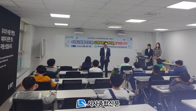 ÇÑÆí, ±¤ÁÖ±¤¿ª½Ã±³À°¿¬±¸Á¤º¸¿ø ¹Úö½Å ¿øÀåÀº ¡°Èûµé°í ¾î·Á¿î Á¡µµ ¸¹°ÚÁö¸¸, ¹Ì·¡ »çȸ¸¦ À̲ø¾î°¥ ¸®´õ·Î¼ÀÇ ÀÚ±à½ÉÀ» °®°í ¿½ÉÈ÷ Âü¿©Çؼ ÀÚ½ÅÀÇ ÀÚÁú°ú ¿ª·®À» Ű¿ì´Â ÀǹÌÀÖ´Â ½Ã°£ÀÌ µÇ±æ ¹Ù¶õ´Ù¡±¸ç ¡°¾ÕÀ¸·Îµµ ÃÖ¼±À» ´ÙÇÏ¿© ÇлýµéÀ» Áö¿øÇϰڴ١±°í ¹àÇû´Ù.