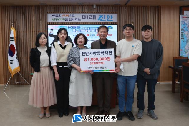 [½Ã»çÁ¾ÇսŹ® = ¿À½ÂÅà ±âÀÚ] Áø¾È±º Çпø¿¬ÇÕȸ(ȸÀå ¾È¼Û¼·)Àº Áø¾È»ç¶ûÀåÇÐÀç´Ü(ÀÌ»çÀå ÀüÃἺ)¿¡ ÀåÇÐ±Ý 100¸¸¿øÀ» Àü´ÞÇß´Ù.
