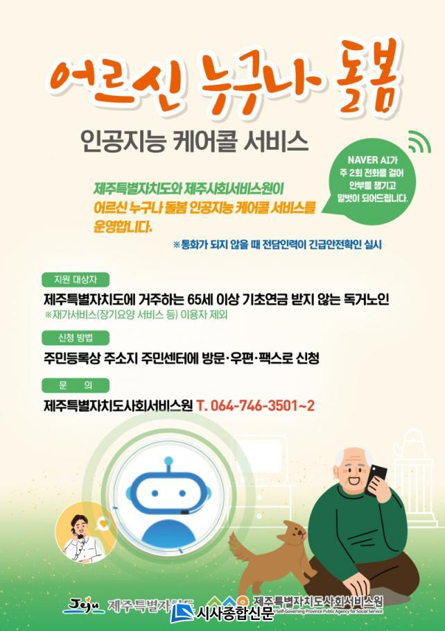 Á¦ÁÖÆ¯º°ÀÚÄ¡µµ»çȸ¼ºñ½º¿øÀº ¼Òµæ±âÁØ Àû¿ëÀ¸·Î ¹ß»ýÇÑ µ¹º½»ç°¢Áö´ë¸¦ ÇØ¼ÒÇϱâ À§ÇØ ¸¸ 65¼¼ ÀÌ»ó Ȧ·Î »ç´Â ³ëÀÎ Áß ¾ÈºÎÈ®ÀÎÀ» Èñ¸ÁÇÏ´Â ±âÃÊ¿¬±Ý ¹Ì¼ö±ÞÀÚ 500¸íÀ» ´ë»óÀ¸·Î ÁÖ 2ȸ AI¿Í Åëȸ¦ ÁøÇàÇÑ´Ù.