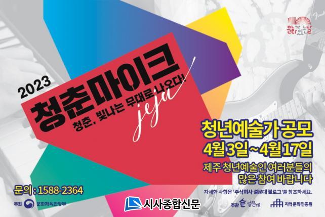 ¡®2023 ¹®È°¡ ÀÖ´Â ³¯ <ûÃḶÀÌÅ© Á¦ÁÖ>¡¯ û³â¿¹¼ú°¡ °ø¸ð´Â 1988³â 1¿ù 1ÀϺÎÅÍ 2004³â 12¿ù 31ÀÏ »çÀÌ¿¡ Ãâ»ýÇÑ ¸¸19¼¼~34¼¼·Î ±¸¼ºµÈ ´ëÇѹα¹ û³â¿¹¼ú°¡ ´©±¸³ª ½ÅûÀÌ °¡´ÉÇÏ´Ù. Áö¿ø À帣´Â À½¾Ç, ¿¬±Ø, ¹«¿ë, ´Ù¿ø¿¹¼ú, ¿¹¼úÀÏ¹Ý µî ´Ù¾çÇÑ À帣ÀÇ Áö¿øÀÌ °¡´ÉÇϸç 1Â÷ ¼·ù ¹× µ¿¿µ»ó ½É»ç¿Í 2Â÷ ½Ç¿¬ ¿Àµð¼ÇÀ» ÅëÇØ ÃÑ 16°³ ÆÀÀ» ¼±Á¤ÇÒ °èȹÀÌ´Ù. ¼±Á¤µÈ û³â¿¹¼ú°¡´Â 5¿ùºÎÅÍ 11¿ù ¸Å´Þ ¸¶Áö¸· ÁÖ ¡®¹®È°¡ ÀÖ´Â ³¯¡¯ ÁÖ°£¿¡ ±âº» 5ȸÀÇ °ø¿¬±âȸ Á¦°ø°ú Àοø¿¡ µû¶ó °¢ ÆÀ´ç °ø¿¬ 1ȸ´ç ÃÖ¼Ò 50¸¸¿ø¿¡¼ ÃÖ´ë 210¸¸¿øÀÇ Áö¿ø±ÝÀ» ¹Þ´Â´Ù.