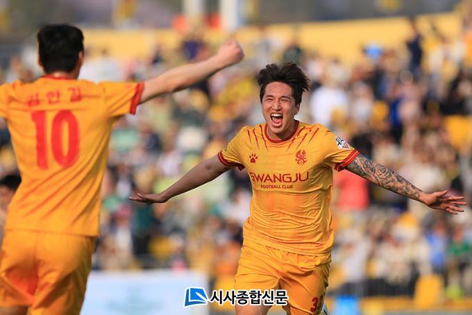 ±¤ÁÖ°¡ ÃÖ°íÀÇ ºÐÀ§±â¸¦ À̾°í ÀÖ´Ù. ±¤ÁÖ´Â Áö³ ¶ó¿îµå ¼ö¿øFC¿ÍÀÇ È¨°æ±â¿¡¼ À̹αâ, ¹ÚÇѺóÀÇ µæÁ¡¿¡ ÈûÀÔ¾î 2-0 Â¥¸´ÇÑ ½Â¸®¸¦ °Åµ×´Ù.