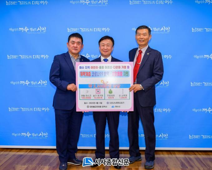 ¿©¼ö½Ã¿¡ µû¸£¸é Áö³ 6ÀÏ ½ÃÀå½Ç¿¡¼ ¿¸° Àü´Þ½Ä¿¡´Â Á¤±â¸í ½ÃÀåÀ» ºñ·ÔÇØ (»ç)³ª´©¸çÇϳªµÇ±â ÁøÃ¢È£ »ç¹«Ã³Àå, õÅÂÁ¾ Àå´ö»ç(µÐ´öµ¿ ¼ÒÀç) Á¶ÈñÇü ½ÅµµÈ¸ÀåÀÌ Âü¼®Çß´Ù. ÈÄ¿ø¹°Ç°Àº ¸¶½ºÅ©, ¼Õ¼Òµ¶Á¦, ½À±âÁ¦°ÅÁ¦, Áֹ漼Á¦ µî 2500¸¸ ¿ø »ó´çÀÇ ¹æ¿ª ¹× »ýȰ ¿ëǰÀ¸·Î °ü³» ³ëÀοä¾ç½Ã¼³ 22°³¼Ò, ³ëÀοä¾ç°øµ¿»ýȰ°¡Á¤ 9°³¼Ò¿¡ Àü´ÞµÆ´Ù.