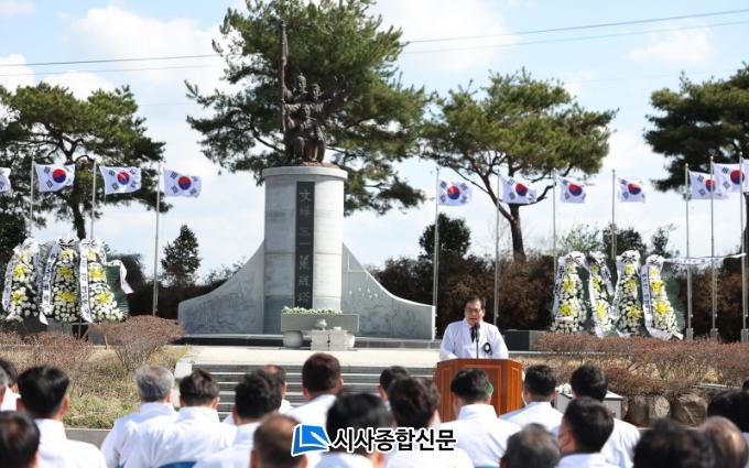 À̹ø Ã߸ð½ÄÀº ¼±¿µéÀÇ ¼þ°íÇÑ Èñ»ýÁ¤½ÅÀ» ±â¸®±â À§ÇØ ¸¶·ÃµÆ´Ù. Ã߸ð½Ä¿¡´Â ÀÌ»óÀÍ ÇÔÆò±º¼ö, À̰³È£ ±¹È¸ÀÇ¿ø, À±¾Þ¶û ±ºÀÇȸÀÇÀåÀ» ºñ·ÔÇØ À¯Á· µî ¾à 150¿© ¸íÀÌ Âü¼®ÇÑ °¡¿îµ¥ ¾ö¼÷ÇÏ°Ô ÁøÇàµÆ´Ù.