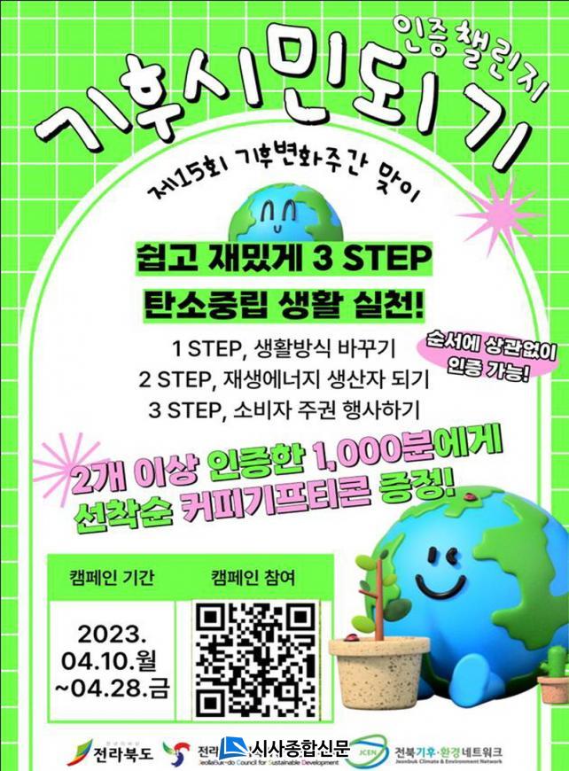 Àü¶óºÏµµ´Â ÀÌ·¯ÇÑ ±âÈÄ À§±â »óȲ¿¡¼ Á¦15ȸ ±âÈĺ¯ÈÁÖ°£À» ¸Â¾Æ ź¼ÒÁ߸³¿¡ ´ëÇÑ µµ¹ÎÀÇ °ü½ÉÀ» À¯µµÇÏ´Â µ¿½Ã¿¡ »ýȰ½Çõ ¹®È¸¦ Á¤Âø½Ãų ¼ö ÀÖµµ·Ï ÀüºÏÁö¼Ó°¡´É¹ßÀüÇùÀÇȸ, ÀüºÏ±âÈÄȯ°æ³×Æ®¿öÅ©¿Í ÇÔ²² ¡®±âÈĽùΠµÇ±â ÀÎÁõ 縰Áö¡¯ Çà»ç¸¦ 4.10.(¿ù)09:00ºÎÅÍ 4.28.(±Ý) 18:00±îÁö ¿Â¶óÀÎÀ¸·Î ÁøÇàÇÑ´Ù°í ¹àÇû´Ù.