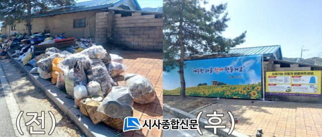 ¶ÇÇÑ, ºÒ¹ý ¾²·¹±â°¡ ¹«´ÜÀ¸·Î ¹æÄ¡µÆ´ø ÀÚ¸®¿¡´Â ²É ±×¸²ÀÌ ´ã±ä Ç÷¡Ä«µå¸¦ ¼³Ä¡ÇØ ¾²·¹±â·Î ´«»ìÀ» ÂîǪ¸®°Ô ¸¸µé¾ú´ø ¸¶À» ºÐÀ§±â¸¦ È»çÇÏ°Ô ¹Ù²Ù¾ú°í, ¿Ã¹Ù¸¥ ¾²·¹±â ¹èÃâ ¹æ¹ý ¾È³»ÆÇÀ» ¼³Ä¡ÇØ ÇâÈÄ ¾²·¹±â ¹èÃâ°ú ¼ö°Å°¡ ¿øÈ°È÷ ÀÌ·ç¾îÁöµµ·Ï Á¶Ä¡Çß´Ù.