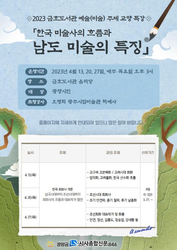 4¿ù Ưº°°¿¬Àº <Çѱ¹ È¸È»ç °³·Ð – ¼±»ç½Ã´ëºÎÅÍ Á¶¼±½Ã´ë±îÁö>¸¦ ÁÖÁ¦·Î ±¤Áֽø³¹Ì¼ú°ü ¿Àº´Èñ Çп¹»ç°¡ °¿¬À» ¸Ã¾Æ ¿À´Â ¡â13ÀÏ ¡â20ÀÏ ¡â27ÀÏ ÃÑ 3¹ø¿¡ °ÉÃÄ ÁøÇàÇÑ´Ù.