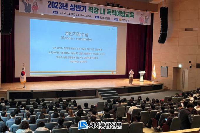¼ºÈñ·Õ ¹æÁö Á¶Á÷¹®È Áø´ÜÀº ¼ºÈñ·Õ ¹æÁö ±ÔÁ¤ ¹× »ç°Ç ´ëÀÀü°è, ±¸¼º¿øÀÇ ¼ºÈñ·Õ °ü·Ã Àνġ¤°æÇ衤´ëó ´É·Â µî Áø´ÜÀ» ÅëÇØ °³¼±»çÇ×À» µµÃâÇÏ°í ¼ºÀÎÁöÀû ¼ºÈñ·Õ¡¤¼ºÆø·Â »ç°Çó¸® ¿ª·®À» °ÈÇϱâ À§ÇÑ °ÍÀÌ´Ù. ¶Ç 11ÀÏ µµÃ» ±è´ëÁß°´ç¿¡¼ ¼ºÀÎÁö °¨¼ö¼º Çâ»óÀ» À§ÇØ Á÷¿ø 600¿© ¸íÀ» ´ë»óÀ¸·Î Æø·Â ¿¹¹æ ±³À°À» ÁøÇàÇß´Ù.