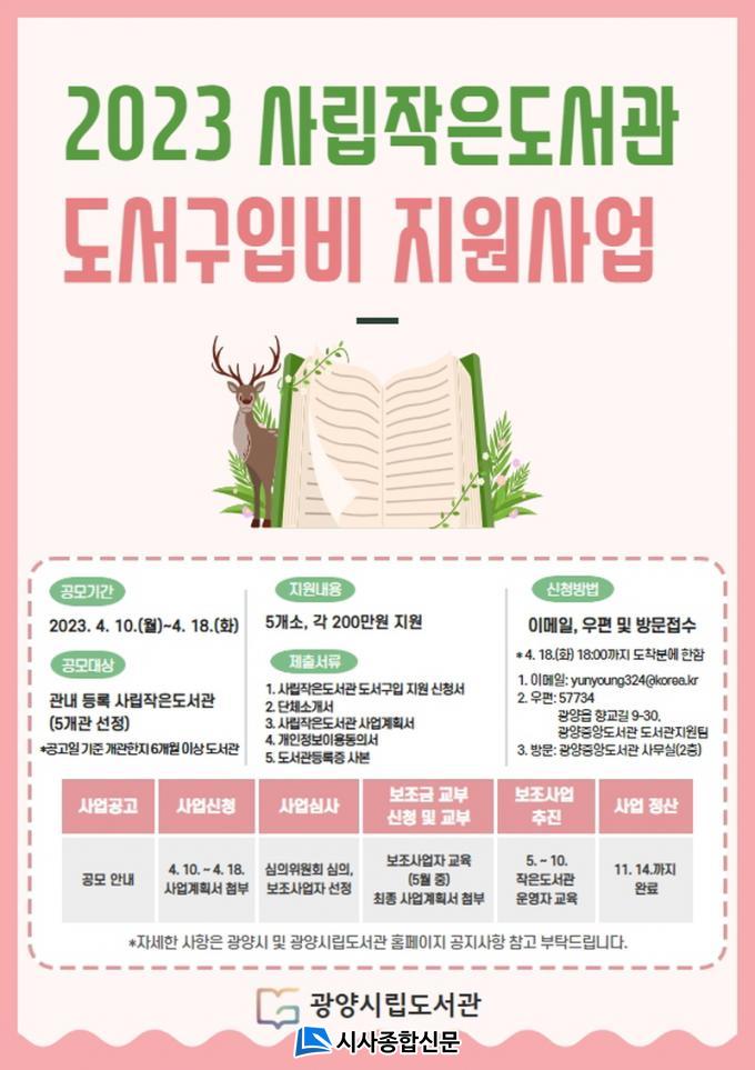 | ±¤¾ç½Ã, 2023 »ç¸³ÀÛÀºµµ¼°ü µµ¼±¸ÀÔºñ Áö¿ø °ø¸ð ½ÃÀÛ »ç¸³ÀÛÀºµµ¼°ü 5°³¼Ò, µµ¼±¸ÀÔºñ 200¸¸¿ø Áö¿ø »ç¾÷ ÃßÁø |