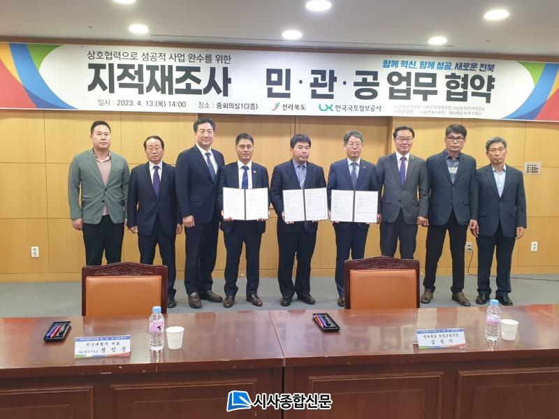 ÀüºÏµµ´Â 13ÀÏ Çѱ¹±¹ÅäÁ¤º¸°ø»ç(LX) ÀüºÏº»ºÎ¿Í ¹Î°£´ëÇàÀÚ ¢ß°í¿ø°ø°£Á¤º¸ µî 6°³ ¾÷ü°¡ Âü¿©ÇÑ °¡¿îµ¥ ÁöÀûÀçÁ¶»ç»ç¾÷À» ¼º°øÀûÀ¸·Î ÃßÁøÇϱâ À§ÇÑ ¡®¹Î‧°ü‧°ø ¾÷¹«Çù¾à¡¯À» ü°áÇß´Ù°í ¹àÇû´Ù.