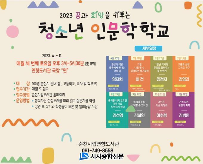 û¼Ò³â Àι®ÇÐÇб³´Â û¼Ò³â ´©±¸³ª Âü¿©ÇÒ ¼ö ÀÖÀ¸¸ç, ÀÚ¼¼ÇÑ »çÇ×Àº ¼øÃµ½Ã¸³µµ¼°ü ´©¸®ÁýÀ» È®ÀÎÇϰųª ¼øÃµ½Ã¸³¿¬Çâµµ¼°ü(061-749-8557)À¸·Î ¹®ÀÇÇÏ¸é µÈ´Ù.