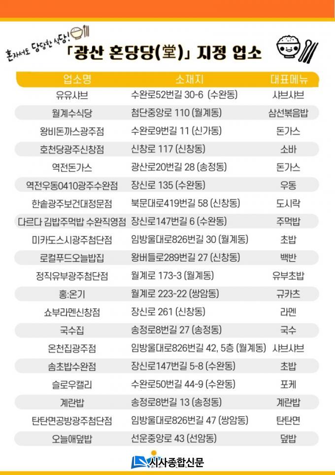 | ±¤ÁÖ±¤¿ª½Ã, ±¤»ê±¸, ¡°È¥¹ä ȯ¿µ¡± ±¤»êÈ¥´ç´ç À½½ÄÁ¡ 20°÷ ÁöÁ¤ ±¤»ê±¸ ´©¸®Áý ¸í´Ü °Ô½Ã¡¦¿Â¿ÀÇÁ¶óÀÎ È«º¸ Áö¿ø |
