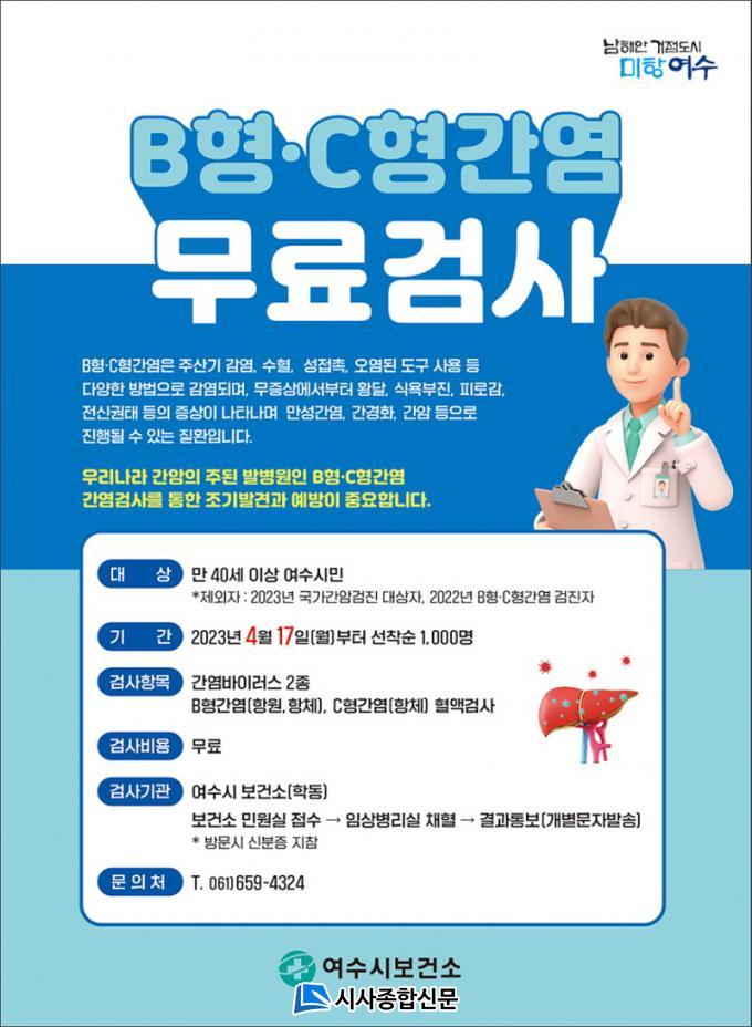 [½Ã»çÁ¾ÇսŹ® = ¿À½ÂÅà ±âÀÚ] ¿©¼ö½Ã(½ÃÀå Á¤±â¸í)°¡ ¿À´Â 17ÀϺÎÅÍ ¸¸ 40¼¼ ÀÌ»ó ½Ã¹Î 1000¸íÀ» ´ë»óÀ¸·Î BÇü, CÇü°£¿° ¹«·á°Ë»ç¸¦ ½Ç½ÃÇÑ´Ù.
