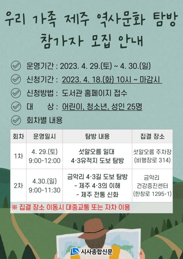 [½Ã»çÁ¾ÇսŹ® = °í¼º¹Î ±âÀÚ] Á¦ÁÖµµ¼°ü(°üÀå ¾çÀ±»ï) ÇѼöÇ®µµ¼°üÀº 4¡¤3 À¯ÀûÁö ޹æÀ» ÅëÇÏ¿© Á¦ÁÖ ÀÌÇØ ±³À° Ȱ¼ºÈ¿¡ ±â¿©ÇϰíÀÚ¡®2023³â ¿ì¸® °¡Á· Á¦ÁÖ ¿ª»ç¡¤¹®È Ž¹æ¡¯À» ¿î¿µÇÒ ¿¹Á¤ÀÌ´Ù.