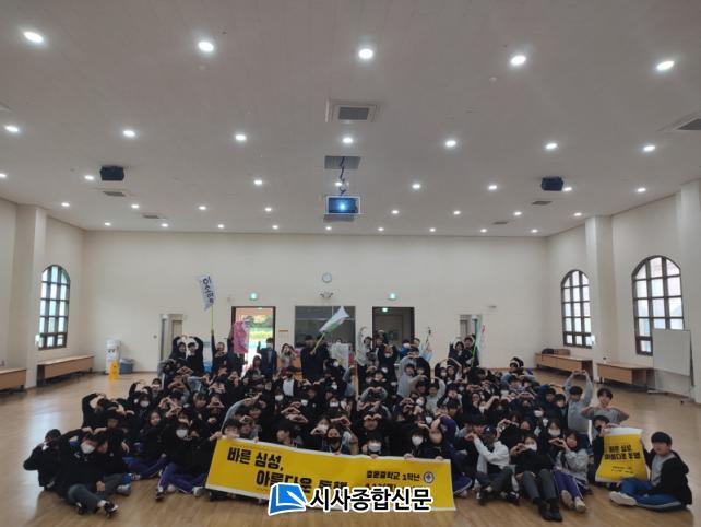 [½Ã»çÁ¾ÇսŹ® = °í¼º¹Î ±âÀÚ] Áß¹®ÁßÇб³(±³Àå °±ÝÁø)´Â 4¿ù 13ÀϺÎÅÍ 4¿ù 14ÀϱîÁö 1¹Ú 2ÀÏ µ¿¾È 1Çгâ Çлý 149¸íÀ» ´ë»óÀ¸·Î Á¦ÁֺοµÃ»¼Ò³â¼ö·Ã¿ø¿¡¼¡®¹Ù¸¥ ½É¼º, ¾Æ¸§´Ù¿î µ¿Ç࡯À̶ó´Â Ç¥¾î ¾Æ·¡ Àμº¼ö·ÃÀ» ½Ç½ÃÇß´Ù.