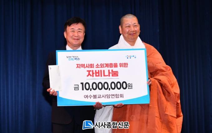 À̳¯ ¿©¼öºÒ±³»ç¾Ï¿¬ÇÕȸ´Â ȸÀå ÃëÀÓ¹ýȸ¸¦ ±â³äÇØ Áö¿ª»çȸ ¼Ò¿Ü°èÃþÀ» À§ÇÑ ÀÚºñ³ª´® 1000¸¸ ¿øÀ» ¿©¼ö½Ã¿¡ Àü´ÞÇß´Ù.