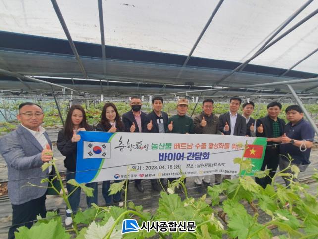 [½Ã»çÁ¾ÇսŹ® = ¿À½ÂÅà ±âÀÚ] ³²¿ø½Ã(½ÃÀå ÃÖ°æ½Ä) ¹Î¼± 8±â °ø¾à»ç¾÷ Áß ÇϳªÀÎ ³ó¡¤ÃࡤƯ»ê¹° ¼öÃâ È®´ë¸¦ À§ÇÑ ÀÏȯÀ¸·Î »õ·Ó°Ô ½Å½ÃÀåÀ¸·Î ¶°¿À¸£°í ÀÖ´Â µ¿³²¾Æ¿¡ ³ó»ê¹° ¼öÃâ È®´ë¸¦ À§ÇØ º£Æ®³² ¼öÀÔ¹ÙÀ̾î¿Í ±¹³» ³ó»ê¹° ¼öÃâ¾÷ü ´ëÇ¥°¡ 4. 18ÀÏ ³²¿øÀ» ¹æ¹®ÇÏ¿© ³²¿ø½Ã ¿ø¿¹»ê¾÷°úÀå, ³²¿ø¿ø¿¹³óÇù Á¶ÇÕÀå, ³²¿ø½ÃÁ¶ÇÕ°øµ¿»ç¾÷¹ýÀÎ ´ëÇ¥, ³óÃÌÁøÈïû ¼öÃâ³ó¾÷Áö¿ø°ú ¿¬±¸°ü µîÀÌ Âü¼®ÇÑ °¡¿îµ¥ ³²¿ø½Ã ³ó»ê¹° ¼öÃâǰ¸ñ À°¼º ¹× ¼öÃâȰ¼ºÈ °£´ãȸ¸¦ °¡Á³´Ù.