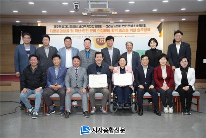 [½Ã»çÁ¾ÇսŹ® = ¿À½ÂÅà ±âÀÚ] Àü¶ó³²µµÀÇȸ ¾ÈÀü°Ç¼³¼Ò¹æÀ§¿øÈ¸(À§¿øÀå À̵¿Çö)´Â 19ÀÏ, Á¦ÁÖÆ¯º°ÀÚÄ¡µµÀÇȸ ´ëȸÀǽÇ(1Ãþ)¿¡¼ Á¦ÁÖÆ¯º°ÀÚÄ¡µµÀÇȸ º¸°Çº¹Áö¾ÈÀüÀ§¿øÈ¸(À§¿øÀå ±è°æ¹Ì)¿Í Áö¹æºÐ±Ç°È ¹× À糡¤¾ÈÀü ºÐ¾ß Çù·ÂÁõÁøÀ» À§ÇØ ¾÷¹«Çù¾àÀ» ü°áÇß´Ù.